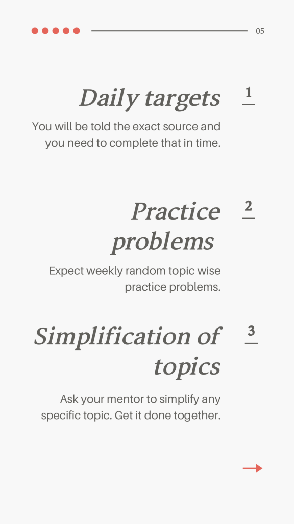 Personal mentorship which includes daily & weekly targets, practice problems, and live meeting for discussion.